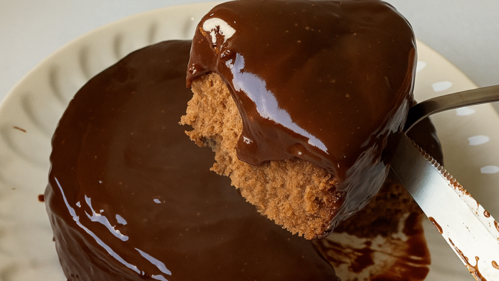 • Se quiser, faça uma calda simples de chocolate (chocolate em pó + leite + açúcar + manteiga) e despeje por cima ainda quente.