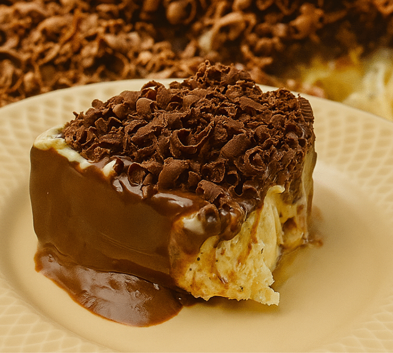 Sobremesa de mousse de maracujá na travessa com chocolate