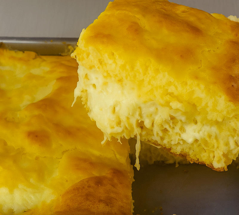- Em uma forma untada com manteiga e farinha, despeje metade da massa.
